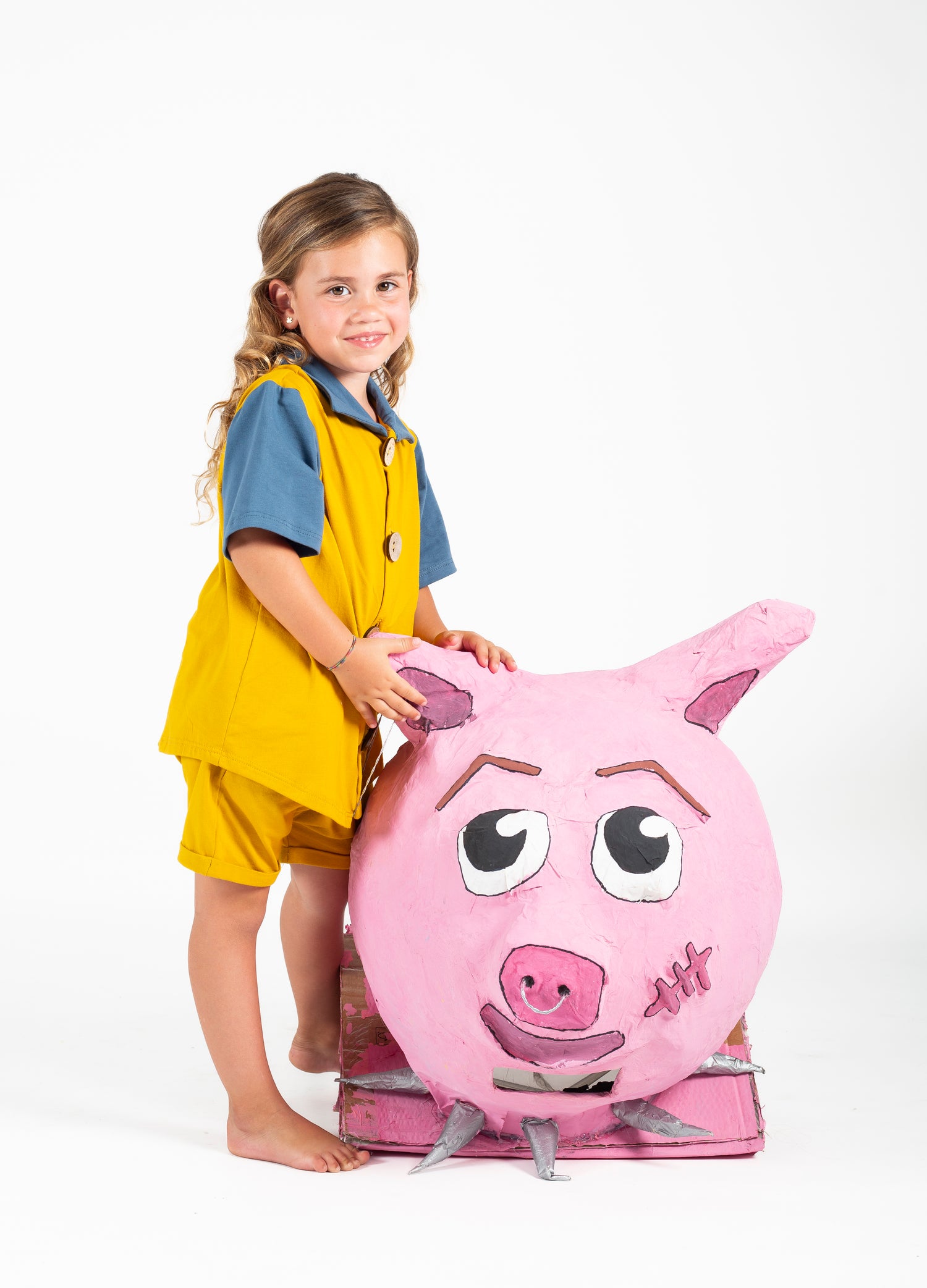 La camisa de botones mostaza con cuello y mangas azules es perfecta para bebés y niños: evolutiva, cómoda y respetuosa con el planeta.