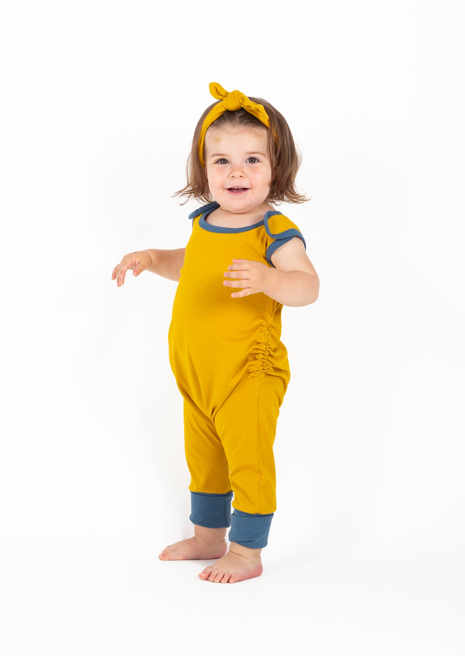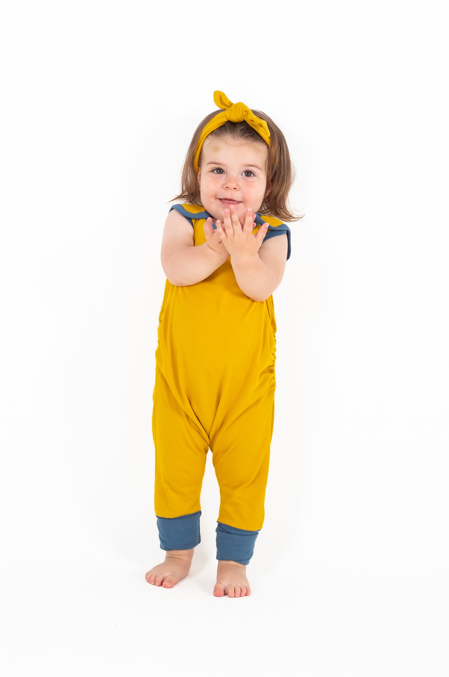 Un básico atemporal de color mostaza, cómodo y sostenible, perfecto para acompañar a tu bebé en todas sus etapas.