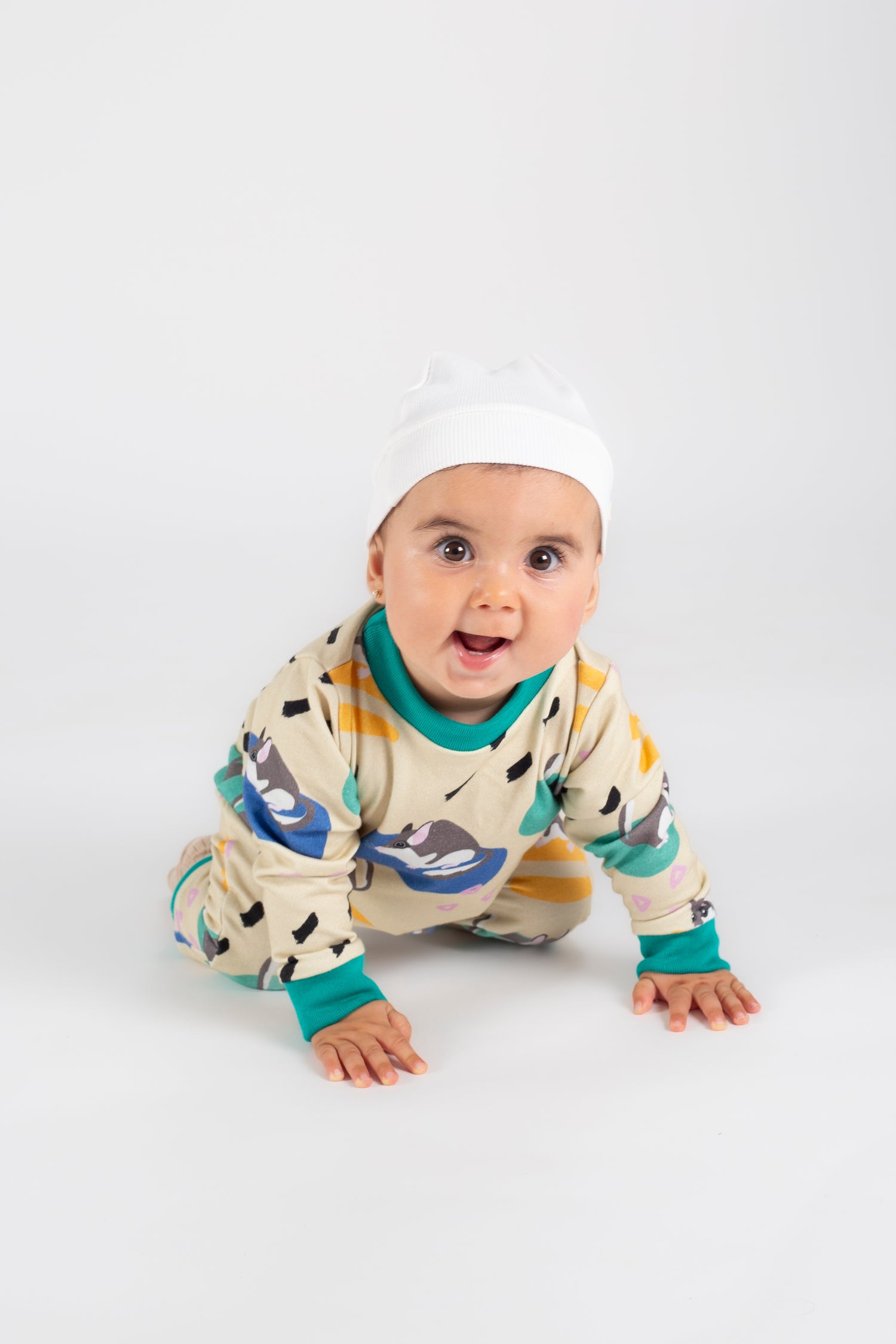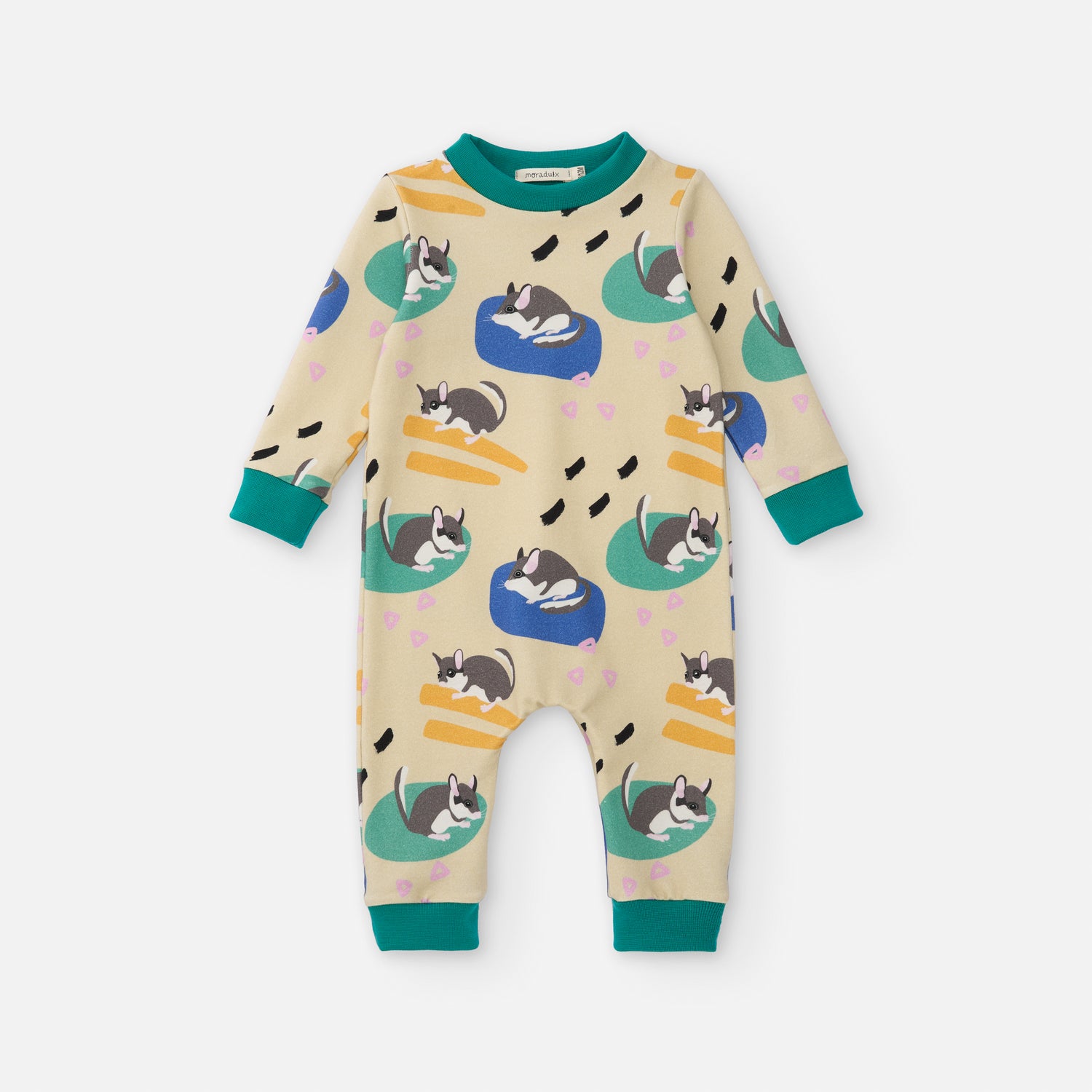 Un mono práctico y adorable para los primeros meses del bebé. Este mono con estampado de ratones combina comodidad, suavidad y estilo, pensado para acompañar al recién nacido en sus primeros días y semanas.