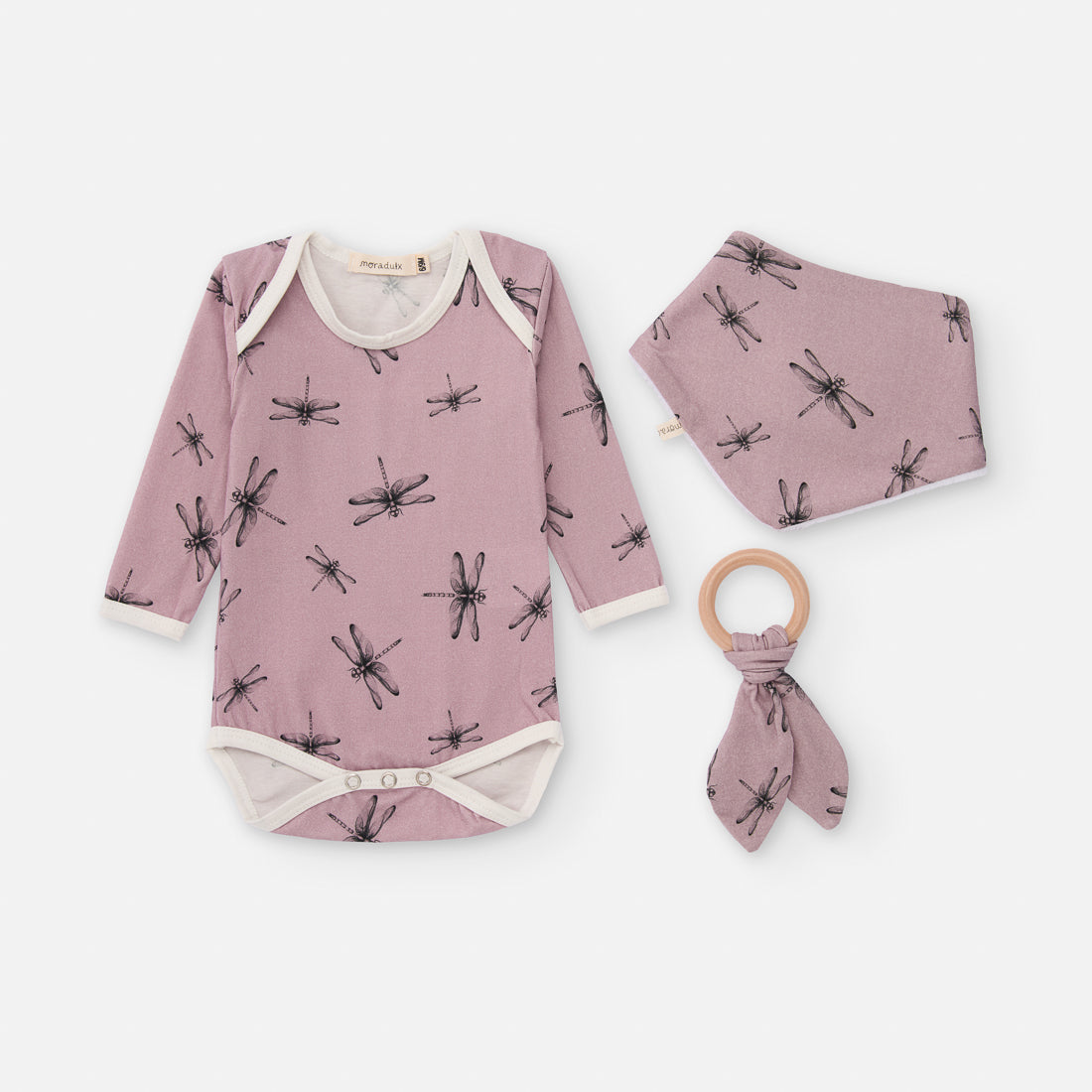 Body diseñado y producido de manera artesanal con diseño exclusivo de Moraduix Kids de libélulas.