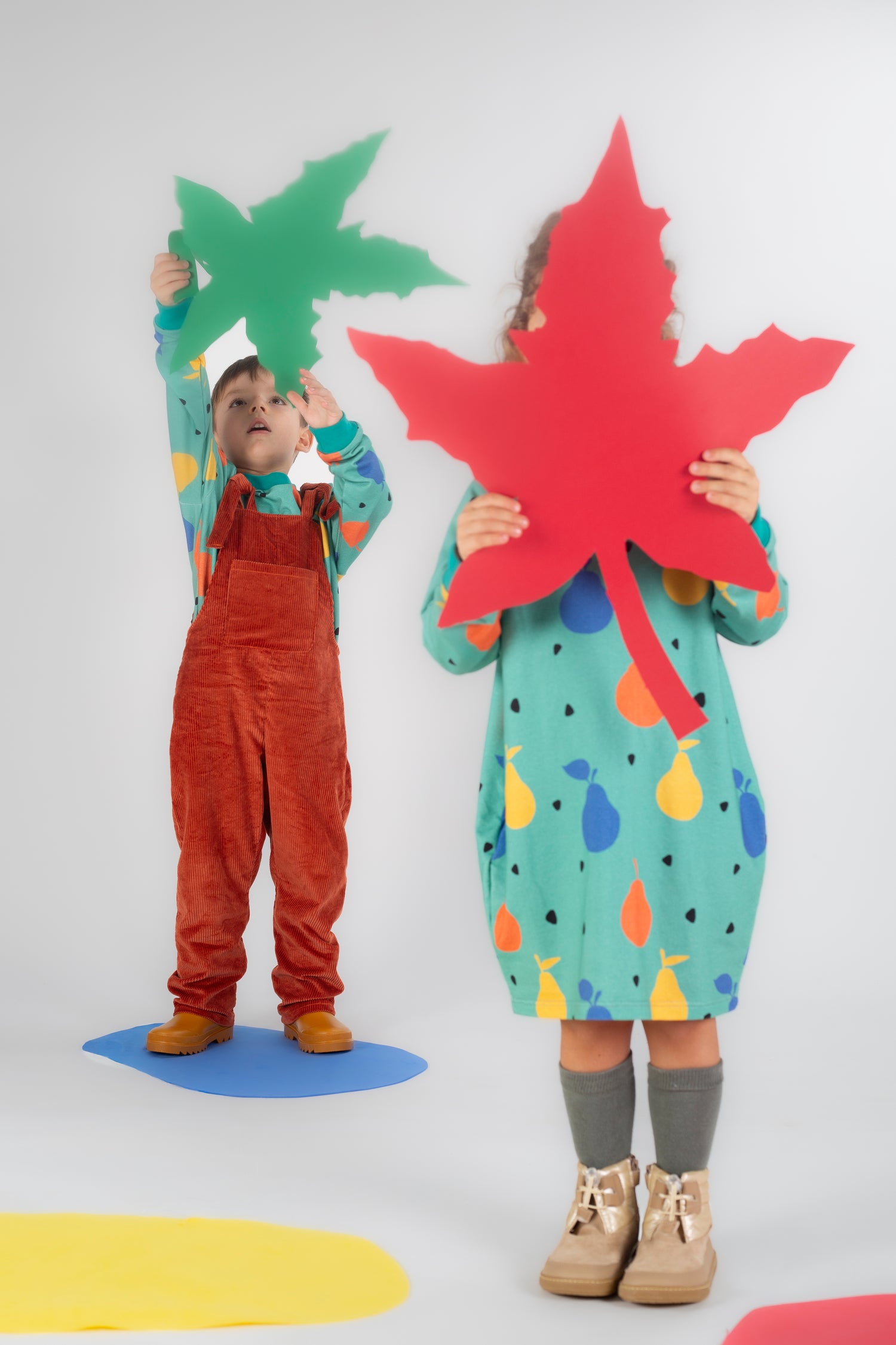 Este peto ha sido diseñado para que los niños puedan desplazarse con comodidad y disfrutar de cada momento del día, gracias a su corte holgado y tejido flexible. Sus tirantes atados ajustables facilitan que los pequeños se vistan y se quiten la prenda de manera independiente, mientras que su color marrón lo convierte en un básico versátil y elegante.