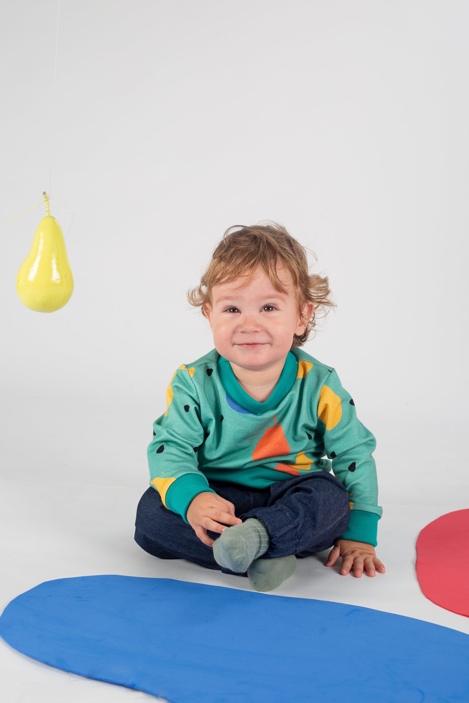 Pensada para acompañar a los niños en sus juegos y aventuras, esta sudadera combina comodidad y libertad de movimiento con un diseño alegre y divertido.